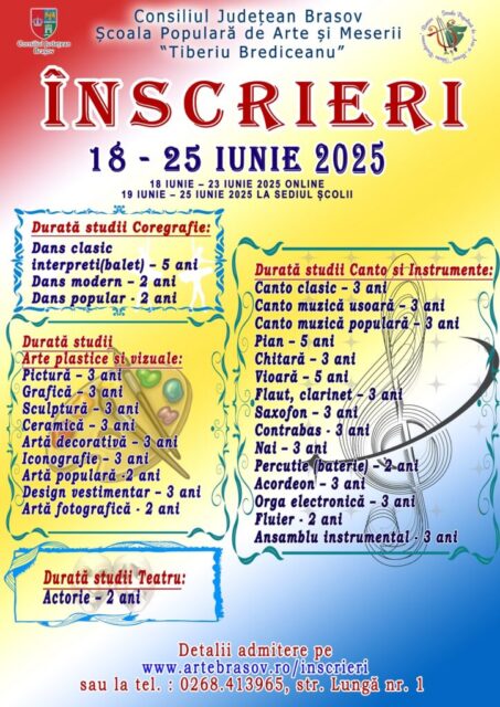 ÎNSCRIEREA LA SCOALA POPULARA DE ARTE ŞI MESERII “TIBERIU BREDICEANU” BRAŞOV
